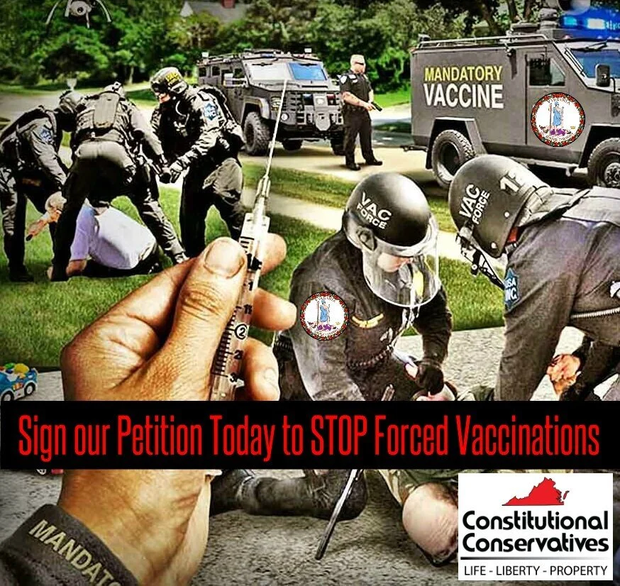 We the undersigned, demand that our elected State Delegates and Senators vote to remove the authority of the appointed Virginia Health Commissioner to force free people to take any COVID vaccination.